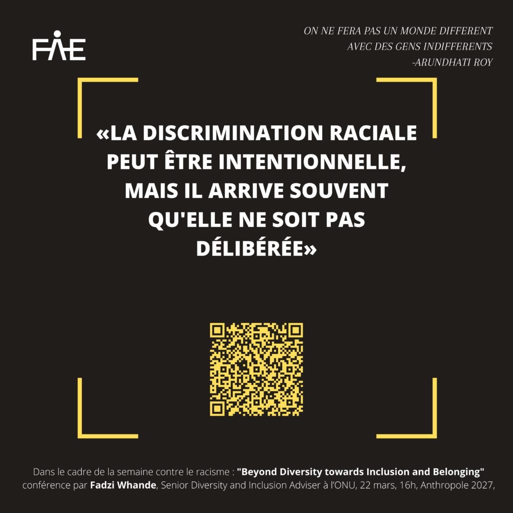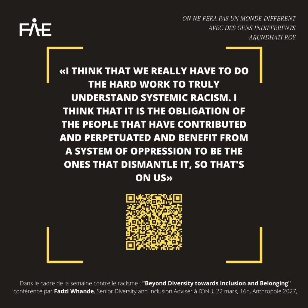 Conférence « Beyond Diversity towards Inclusion and Belonging », de Fadzi Whande, Senior Diversity and Inclusion Adviser UN Human rights, organisée par la FAE