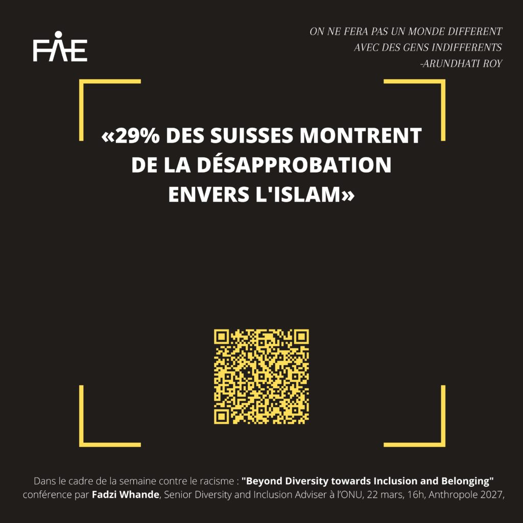 - « 29% des Suisses montrent de la désapprobation envers l’islam. » Enquête sur le vivre ensemble en Suisse OFS 2018 https://www.bfs.admin.ch/bfs/fr/home/statistiques/population/enquetes/zids.html